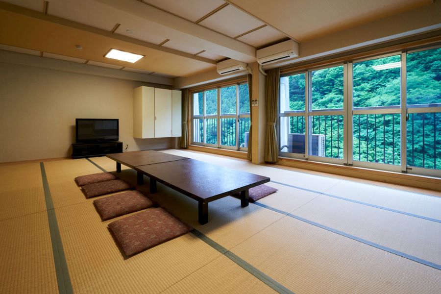 四万川のせせらぎに寄り添う「四万温泉 ゆずりは」は、昭和レトロな趣と、縁起の良い常緑高木「楪(ゆずりは)」にちなむやすらぎの空間が魅力の温泉宿。世代を超えて受け継がれる心づくしのおもてなしと、春に芽吹く新葉のように心を新たにする滞在をお届けします。3つの貸切風呂と川辺の静けさが、心と体をゆるやかに癒してくれます。四万の自然と川のせせらぎに包まれた、静かな和の客室。7.5畳/10畳/20畳の和室をご用意し、一人旅からご家族、グループでのご滞在まで幅広く対応しています。“SHIN湯治”にも最適な空間で、連泊でも心地よくお過ごしいただけます。