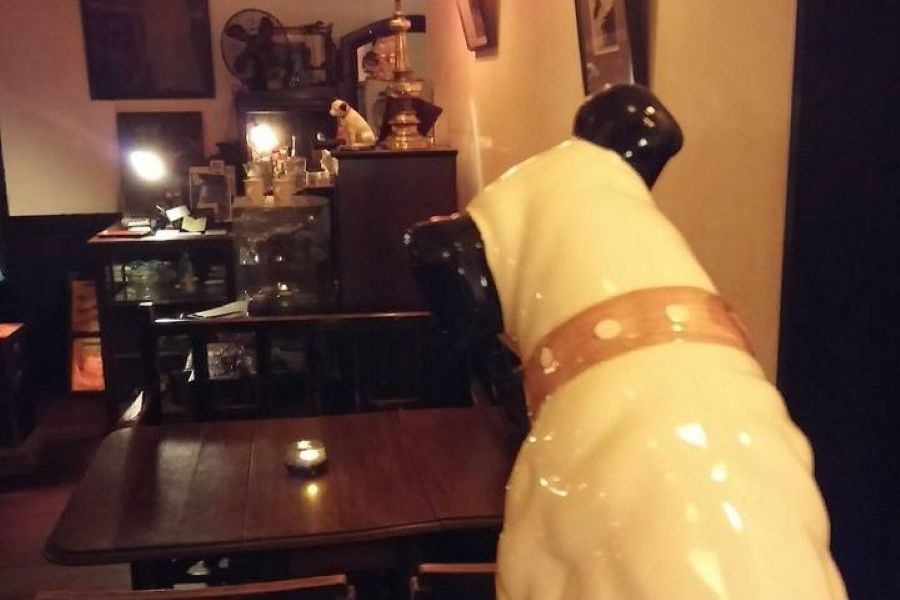 賑やかな小町通りから一本奥に入った路地にある黒壁でシックな趣の外観。夕食にはちょっと早い4時ごろ、散策のあとの打ち上げでおいしいビールを飲めるお店を探していました。看板にはビールまたはワインつきでワンプレートのおつまみ付きで1800円前後のメニューが紹介されていて、でちょうどよい感じと思い入りました。中はアンティークの食器や小物が置かれ、レトロな雰囲気。開店30年ほどのお店と知りました。自家製スモークチキンとスモークチーズ、サラダ&ビールを注文。トースト2枚もついてきてほどよく満たされました。お支払いは「現金なら個別でOK]ということで個別に支払えました。音楽も素敵でしたがちょっと私には音が響きすぎたので星4つで。