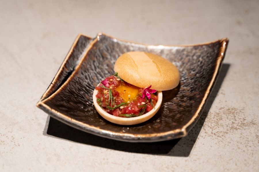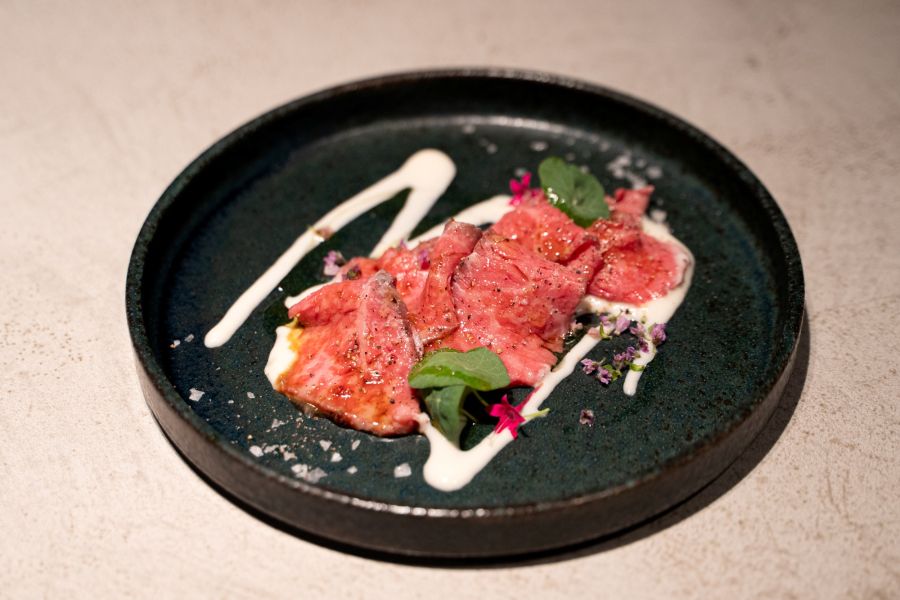地下鉄バスセンター前駅5番出口から徒歩2分が便利な隠れ家的ロケーションに漂う高級感にテンションが上がります。 予約の18時少し前に着、先客は無し。金髪の女性スタッフさんの感じ良い笑顔に迎えられ、落ち着くカウンター席に案内されました。 予約は匠コース10,000円、まずはサッポロClassicで乾杯!薄張りのグラスで尚更美味さを引き立ててくれます。 和牛ユッケの最中:店名の入ったサクサクの最中に包まれた和牛ユッケ、ビールが進みますね。 前菜は和牛カルパッチョ、薄くスライスされた和牛に仄かに甘い新玉ねぎソースが合います。 続いては蟹と鶏の茶碗蒸し。鰹・昆布・鶏のトリプル出汁ベースに、大葉・柚子・茗荷のアクセントが風味良し。 更に鉄板焼きの実演、フランベからの和牛タンのタリアータ:牛タン元にレモンバターソースとバルサミコ、パルミジャーノレッジャーノとルッコラ添え。 美瑛牛ヒレの鉄板焼き:あまり流通しない希少な美瑛牛ヒレ 藻塩・本わさび・タレで堪能。 鍋は白老牛のサーロインしゃぶしゃぶ、バルミューダのコンロと鍋がお洒落、しゃぶしゃぶなのに具沢山。スープは懐かしい味。 鍋の締めは雑炊orきしめん、後者をお願いします!お腹いっぱいでもペロッとおさまりましたw デザートは苺のクレームダンジュ、ふわふわの食感にフレッシュチーズの風味、ヨーグルトの酸味に苺ソースでさっぱり整いました。 若い男女のスタッフさんも終始感じが良く、楽しい会話と時間を楽しませていただきました。 いや〜美味しかったです♪満足、ご馳走様でした!
