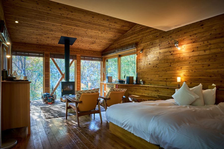 森に溶け込む温泉付き離れで、心身を解きほぐすひととき。15,000坪の広大な敷地に、18棟のヴィラが点在。それぞれが異なる趣を持ち、個々に完全に独立して建っています。間取りや向きも異なり、薪ストーブ、内風呂または露天風呂の温泉が設えられており、滞在者はヴィラを拠点に箱根の散策を楽しむことも、ただ静かな時間を過ごすこともできます。森の中に佇む別荘として、長期滞在や季節ごとのリトリートに最適な場所です。