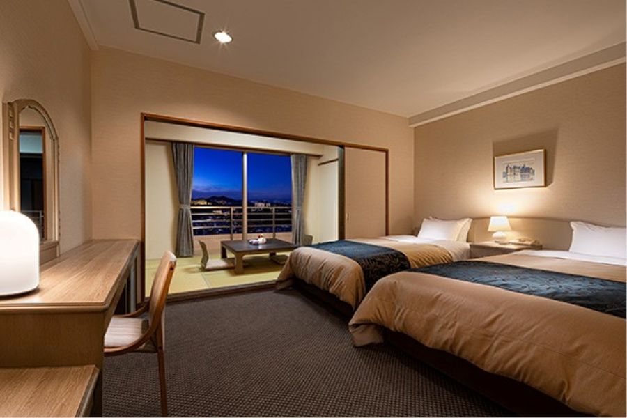 部屋からの鉛山湾囲む白良浜 夜は浜のイルミネーションも感激です 円月島も見え眺望最高です 素泊まりで申し込みました コスパは最高と思います 食事は着いてから買いに行こうと 考えてると後悔します 私は結局、夕食と朝食を申し込みました 2つで4000円プラス位でした コンビニまで歩いて買いに行こうとか どこか近くに食べに行けばと、 お考えなら 少し注意です。 景観が良いので 高台に建ってますから 道の登り降りが ありますので 必ず お弁当かを用意されると宜しいかと 思います😃 温泉も良かったですし 又、行きたいと思いました