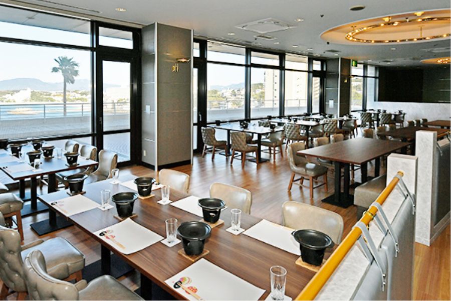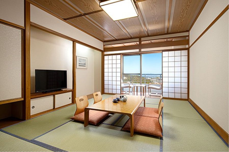 部屋からのオーシャンビューが綺麗だった。 高台にあるし、見晴らしがよい。 素泊まりで12,200円 9Fの和室のお部屋。 歩いて6~7分の場所にコンビニもある。 夕食が5000円、朝食が2400円の別料金だったので、近くのお店へ。 千畳敷まで歩いて10分ほど。 JR白浜駅からバスで20分ほど。