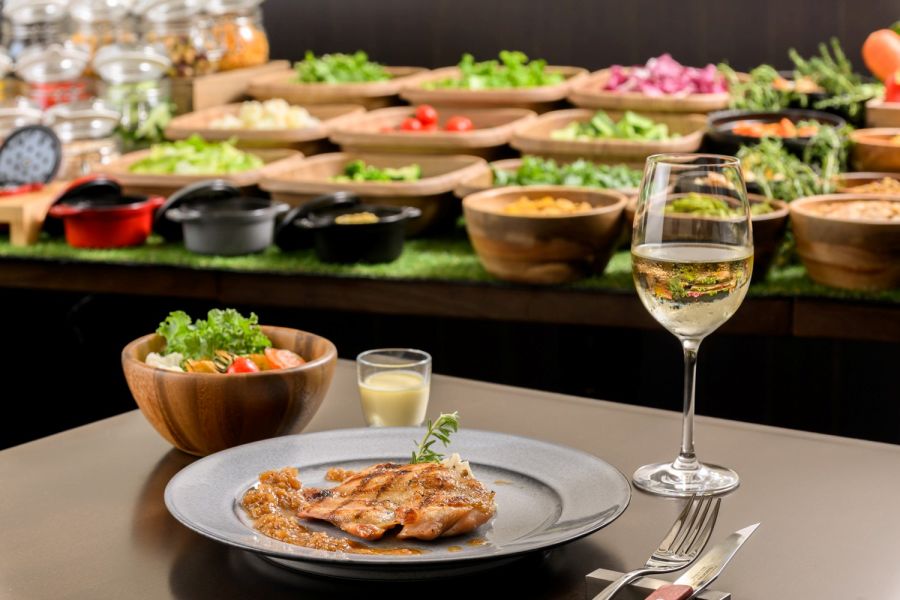 最近、暴飲暴食が多かったので今日はせめてもの罪滅ぼしに美味しい野菜をたらふく食べたい気分てことでこちらのお店にいってきました!! 神戸北野にある小学校をリノベーションした施設神戸北野ノスタという複合施設の2階あるお店です。 店内は、高級感のあるホテルのような雰囲気で、テーブル間隔が広くて開放感があります。 人気店なのでネット予約してからいきました!! 本日は!! ◉ヘジタプルビュッフェ ドリンクバーなし 2980円 ◉鴨むね肉のグリル 六甲シャンピニオンのマデラソース 870円 を注文!! ◯ベジタブルビュッフェを注文すると、870円で単品注文出来る鴨むね肉のグリルは普段聞き慣れないマデランソースがかかっていてなんか美味しかっです。まるで高級フレンチを食べに来た気分!!お肉を食べることによって最後まで野菜に飽きずに食べれるのでおすすめです! ◯ビュッフェは、50種類以上の新鮮な野菜やトッピングが楽しめます。収穫体験といった畑をイメージした盛り付けがかわいかったです。どのお野菜もキラキラでシャキシャキでめちゃ旨い!!自家製ドレッシングもめちゃ旨い!いくらでも野菜を楽しめる味です。 普段なかなか食べないミックスビーンズや、ひよこ豆なども豊富でいろんなサラダボウルが作れて楽しかったです。 焼きたてフォカッチャも食べ放題でかぼちゃスープに浸して野菜の箸休めにたべるのもよかった! 〆にヨーグルトもあって大満足!! ■神戸北野でおしゃれに健康的に野菜を食べるならここですね!ご馳走様でした。