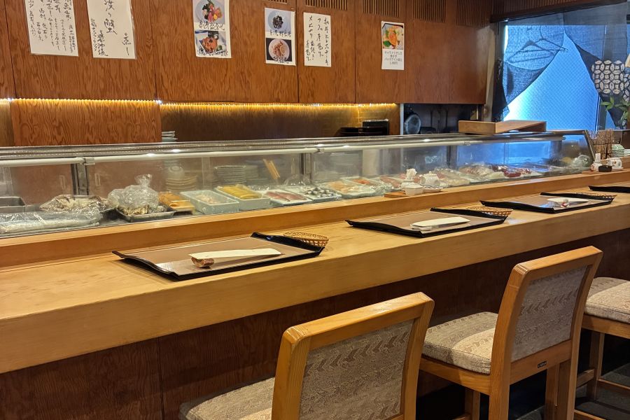 八事の丘陵地から下る坂道は散策にうってつけ。 散歩の途中で丁度昼になり、ふらりと立ち寄ったお寿司屋さんがまさか名古屋の銘店だったとは。 私の前に初老の紳士お二人がお店に入って行くのが見えたので、つられるように店内へ。 立派なカウンターを見てビビり、その値段に更にビビる。 だから、テーブル席で昼膳の梅¥2,500を頂く。 先付は3種盛り。秋刀魚のコンフィが美味しい。 里芋も滋味たっぷり。茶碗蒸しも言わずもがな。 コチ、鰹、穴子、海老、鉄火、あと何だっけな? とにかく美味しかった。夕方所用があるのでノンアルコールで喉を潤す。美味しかったな。 まさに寿司を摘んだって感じでした。 いつかカウンターで食べられるように仕事頑張ろう。