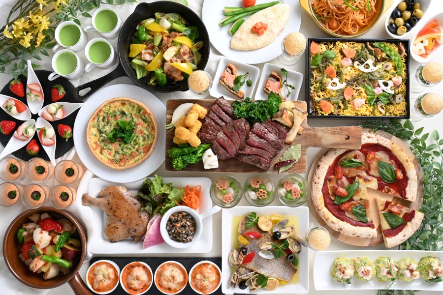 ライブキッチンとビュッフェ料理を愉しむ美食空間。目の前で調理が行われるライブキッチンと、季節替わりの冷製・温製料理や種類豊富なデザートがビュッフェスタイルでお楽しみいただけるダイニング。家族・友人とのお食事、会社のお集まりなど、お一人様から大人数のグループまで、さまざまなシーンで楽しめる食空間です。