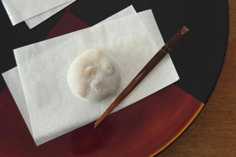 上賀茂神社の烏居前にあるやきもちのお店です、コチラのお菓子をいただきました。 そのいただいたお菓子はもちろんやきもち、味は白餅とよもぎの2種類でどちらも良質な滋賀県江洲米から作った餅で北海道産小豆で作る自家製つぶ餡を包んでいるということ、表面にこんがりとしたきつね色の焼き色がついたお餅、そのもっちりした生地の中にはしっかりした甘みの粒あんが詰まっています。それによもぎの方はそのさわやかな風味もしっかり感じられて美味しくいただけました。