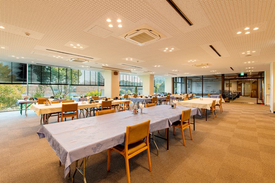 兵庫県加西市笹倉町に位置する「いこいの村はりま」は自然あふれる丘陵地に位置する公共の宿で、年代や身体状況問わず、だれもが気軽に安心してくつろげる宿泊施設です。 敷地の周りが公園になっており、ハイキングや散策などもできます。桜の時期には水仙と桜が咲き、花見スポットとしてもご利用いただけます。
