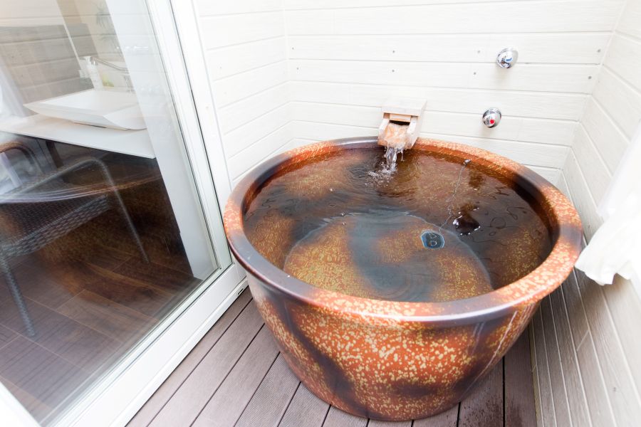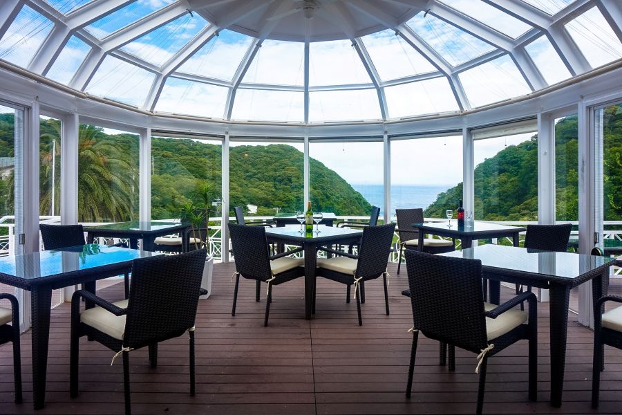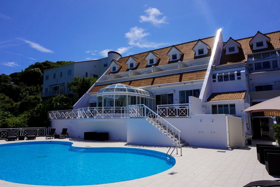 碁石ヶ浜を見下ろす、高台にある南欧風ホテル。下田の天然温泉がお楽しみいただける大浴場の他、客室に露天風呂を設置しております。温泉に癒されワンランク上のラグジュアリーな時間を是非お過ごしください。