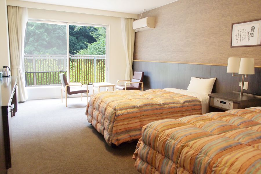 広島市にある国民宿舎、湯来ロッジは、日帰り入浴や宿泊、休憩に利用できる温泉施設。1,500年前に発見されたと伝わる湯来温泉は「広島の奥座敷」とも呼ばれ、加水なしの源泉かけ流しが魅力。pH9.1の単純弱放射能泉で、美肌効果が期待される「美人の湯」として親しまれ、湧出温度28.3℃の源泉風呂は、サウナ後の「冷たい温泉」としての交互浴にも最適。露天風呂では、水内川のせせらぎと四季折々の自然を楽しめます。館内は全館バリアフリー対応で、専用客室2室や福祉風呂も完備し、高齢者や障がいのある方にも安心。料理は湯来のこんにゃくやジビエ、川魚など、地元と旬の素材を活かした会席料理を提供しています。