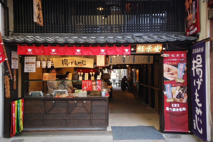 揚げもみじのお店。 宮島を調べているとそこら中で揚げもみじをおすすめしていたので、レアチーズ味をいただきました。 もみじ饅頭の天ぷらって感じ。 可もなく不可もなく。温かくて衣はサクサクなので美味しかったけど、過度な期待は禁物。 宮島を訪れた記念に食べるのはあり! お店の奥にゆっくり座れるスペースがあるのは◎ その奥に平のあげもみ公が祀ってあって可愛かった!