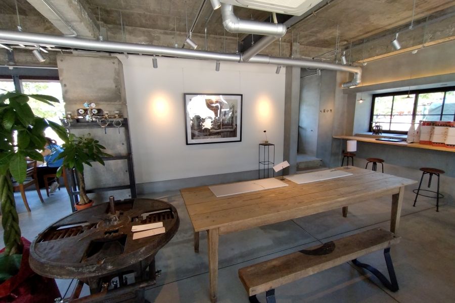 年末に伺いました。外は参拝客でごった返していましたが、なかなか奥の方まで来る方は少ないのか、店内1階には1、2組、2階は私たちのみで大変ゆっくり過ごせました。 ドリンクとスイーツのセットを頂きましたが、最中に挟まれたソフトクリームがさっぱりしてとても美味しかったです。 窓からは大鳥居が見え、奥には雑貨が展示されたスペースもあり、どこを切り取ってもオシャレな空間で快適に過ごせました。