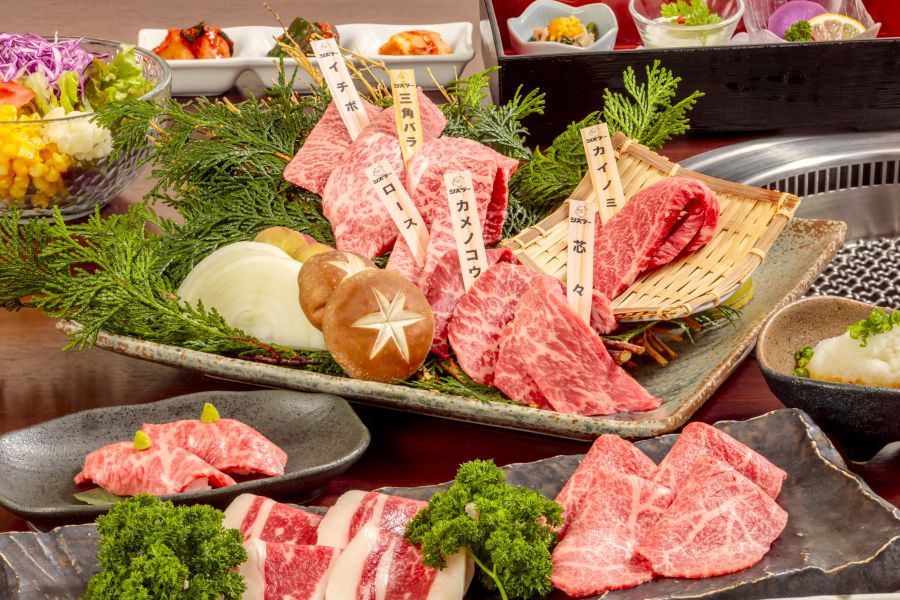 和牛の奥深い魅力を余すことなく味わう、和牛あみ焼会席 シズラー。吟味を重ねて仕入れた上質な和牛をあみ焼きで香ばしく焼き上げ、部位ごとに異なる赤身の力強い旨みや脂の繊細な甘み、食感の違いをじっくりと食べ比べていただけます。一枚ごとに広がる豊かな風味と奥行きのある味わいは、まさに和牛の醍醐味。会席仕立てで一品一品ゆったりとお楽しみいただけるため、焼肉でありながら落ち着いた時間が流れます。接待やご会食、ご家族での節目のお祝いなど、特別な日のひとときにぜひご利用ください。