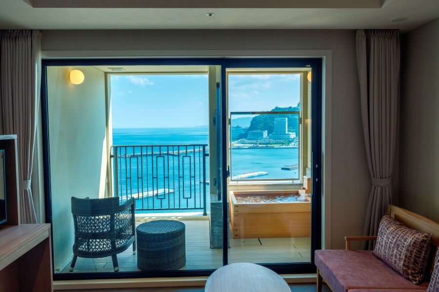 ◼️部屋: 温泉付きツインルームでしたが、綺麗でなかなか良かったです。特に、部屋の露天風呂から見える景色が最高でした。 ◼️温泉: 大浴場は、熱海の割には眺望が無く広さも無かったので残念でした。 ◼️料理: 夜のバイキング、朝のバイキング共に、魚料理(お刺身、金目鯛の煮付け、銀鱈の西京漬の焼魚)が最高に美味しかったです。 ビールやワインも無料で飲めるのは良かったと思います。 ◼️ラウンジ: お茶やコーヒー、ビールも飲めるラウンジは、あまり居心地は良くありませんが、お茶がとても美味しかったです。 夜泣きスイーツも美味しかったですです。 ◼️ロケーション: 熱海の砂浜の目の前なのでとてもアクセスがよく便利です。 センター棟屋上からの朝日が出る所を撮影しましたがとても素敵な景色です。 残念なのは、プレオープンと言うのはわかりますが、チェックイン待ちが1時間もあった事です。準備不足が否めません。