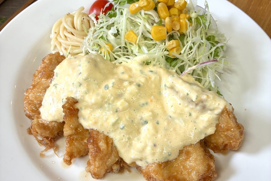 あちゃーる麺トンポー煮絶対おすすめです。 有川滞在中に何度か足を運びました。 このお店は何食べても美味しいことに間違いありませんが、あちゃーる麺だけは絶対に食べておくべきです。 これを食べる目的で新上五島町を訪れるのも全然ありなくらい最初に食べた時の印象は衝撃的おいしさでした。 その他にもカレーもおいしいですが、カレーはチキ南カレーがすすめです。 カレーと柔らかく揚げられたチキン南蛮とそれに掛かっているタルタルソースが混ざり合って、3倍おいしいです。 定食物も丁寧に作られていておすすめですし、なんと言っても手作りドレッシングがお土産にしたいくらい美味しいです。 店内もテラスもiittilaのグラスなんかが飾ってあって、おしゃれな雰囲気でした。 また必ず訪れたいお店です。