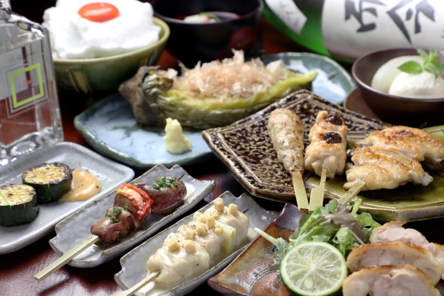 焼鳥屋では珍しいコーススタイル。王道の焼鳥から、大将こだわりの創作串、季節感あふれる逸品がコースをまとめてくれます。創作串は、季節の食材や、広島の食材などを使用し、今までにない感動と驚きを体験いただけます。大人の隠れ家を思わせる店内で食べるコースは、贅沢でありながらもどこかほっこりする、ここでしか味わうことができない特別な時間になります。大将が厳選したコースに合うワインや、日本酒なども数多く取り揃えております。また、デザートも季節の果物などを使用し、お食事の最後までお楽しみいただけます。