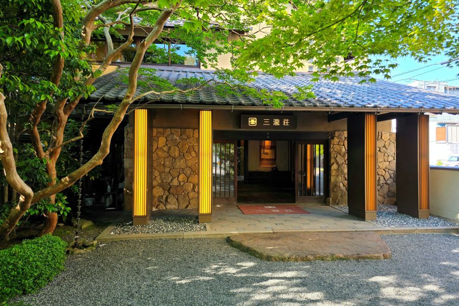 広島市西区三滝町にある三瀧荘へ親戚に誘われ8人で平日の17:30に行って来ました♪ このお店はフマキラー創業者が昭和初期に建てたもので、昭和20年の原爆の被害も少しだけに留まり、1946年(昭和21年)には料亭旅館として創業し、現在では結婚式場や披露宴会場、レストランとして営業しているお店です♪ また今までも将棋や囲碁の名勝負の場所としても利用されているようで、当時、羽生七冠が達成された場所とは知りませんでしたね。 さすが広い庭が素晴らしく、大きな「もみの木」が樹齢約450年とは素晴らしいです♪ 室内は靴のまま入れ、奥の部屋に案内されました♪ 店内はかなり綺麗で上質感があり素晴らしいです♪ ドリンクは以下を美味しく頂きましたね♪ 冷酒は美しいお猪口を選べたのも秀逸です♪ ・生ビール1,100円税込 ・鍋島(冷酒2合)1,650円税込 ・賀茂鶴ゴールド(冷酒2合)2,530円税込 ・神雷(冷酒2合)1,540円税込 ・黒ウーロン茶825円税込 なお支払いはサービス料として別途15%必要でした。 料理は1人8,800円税込(サービス料別途15%要)の以下のコースで、どれも上質でかなり美味しかったです♪ ◯八寸 胡麻豆腐、鮎甘露煮、法蓮草と菊花占地浸し、栗渋皮煮、赤蒟蒻炒り煮、炙り〆鯖小袖寿司、辛子蓮根、酢取り茗荷、赤魚西京焼き ◯椀物 松茸真丈、清汁仕立て、被せ蕪、海老、銀杏、隠元 ◯造里 カマス、マグロ、真鯛、山山葵醤油 ◯焼物 天然鰤、柚子味噌焼、菊花蕪、松葉銀杏、添え野菜、国産牛炭火焼、山椒ソース ◯煮物 笠子、うま里芋唐揚、煮おろし餡 ◯酢物 鰆叩き、粟麩、ポン酢じゅれ ◯食事 鮭・いくら釜焚き御飯(お代わり可)、香の物(きゅうり、大根、蕪)、なめこ赤出汁 ◯甘味 自家製ティラミス 丸窓 広島市西区三滝町にある三瀧荘は、歴史ある建物と庭が素晴らしいだけでなく、室内は綺麗で上質で美味しい日本料理を頂けとてもオススメです!
