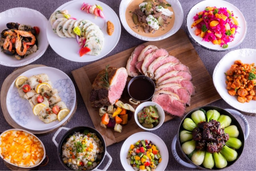 平日のランチに女子会で利用しました。 公式サイトからの予約で各日先着10名割引プランを見つけ、そこから予約したのでお得でした。 料理の内容はさすがホテルのレストランなだけあり、クォリティが高くどれも美味しそうで何を選ぶかワクワク楽しかったです。 対面で料理を作ってくれるコーナーもあります。 閉店が14時なので、ゆっくり食事を楽しみたい方は開店の11時半に予約して行く事をお勧めします。 料理をじっくり見ながら選んでいると、2時間半はあっという間に過ぎました。 少し気になったのは、スープの横にスープ用のカップがなかったり小さい取り皿がなかったり、料理に合わせたお皿がないのがちょっと不便でした。 でも料理はどれも美味しく楽しめます!