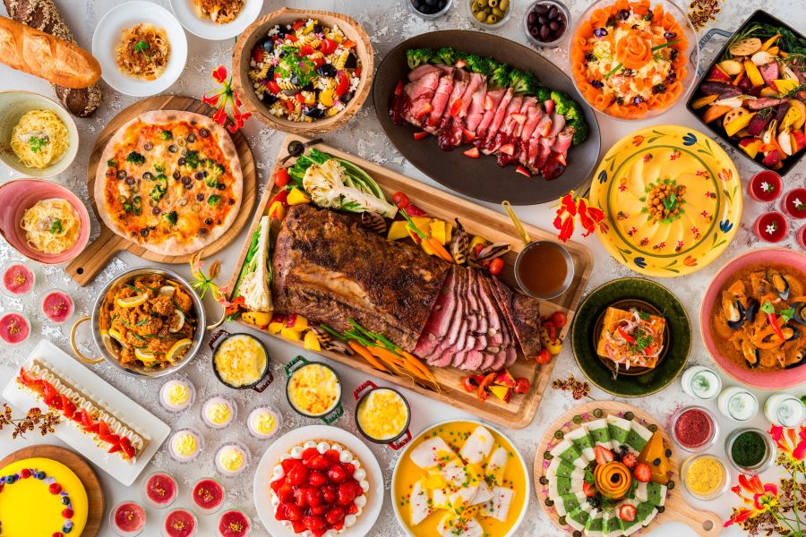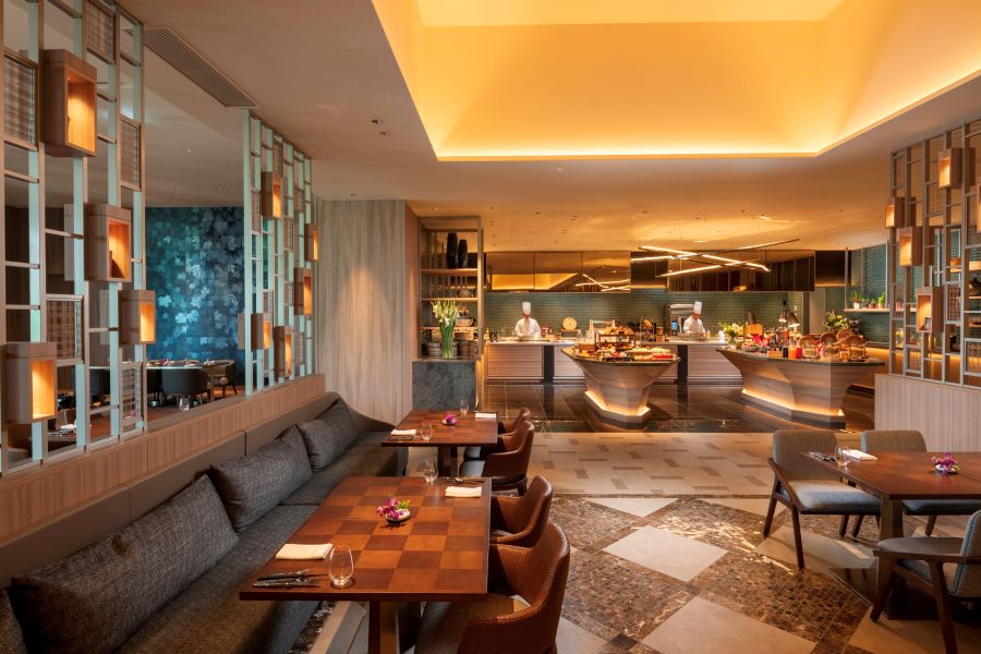 オールデイダイニング「モザイク」は、食、空間、体験がモザイク模様のように重なり合う多彩な魅力あふれるレストラン。焼き立て、出来立てのピザ&パスタやスードル、シェフが目の前でお肉をカッティングするライブステーションを備えたビュッフェエリア、心地よいテラス席やコンテンポラリーなラウンジエリアで構成され、バラエティーに富んだインターナショナルメニューを朝食、ランチ、ディナーにてビュッフェ形式でお楽しみいただけます。また週末には季節ごとにテーマを変え、デコレーションが世界観を演出し、五感を刺激する体験型スイーツビュッフェも魅力です。