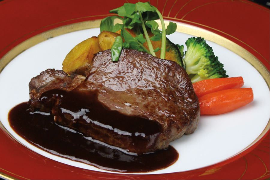 サンプラザの1階にある洋食レストラン。昭和感漂う雰囲気ですが、窓から公園の緑が見えて清潔感のある店内です。ランチは、メインを1品選んで、ごはん、パン、惣菜、サラダ、デザートなどがビュッフェのスタイル。日替わりランチだと1450円と安いですが、この日は牛フィレ肉と魚のフライが付いたクレセントランチ(1650円)にしました。メインは上品なボリュームで、本格的な洋食とは言えないまでもステーキのソースなんかは万人受けする味わいだと思います。パンはバゲットで、ガーリックとバターがあり、バターは注文できるようでした。惣菜は、牛スジと大根の煮込み、オムレツ、ナッツの入ったキャベツ炒めみたいなものがありました。デザートのイチゴのアイスクリームが美味しく、バゲットにのせて食べるのが美味しかっです。値段を考えるとコスパのいいバイキングだと思います。夜の肉にくフェアのメニューにはイマイチ心が踊らなかったてす。
