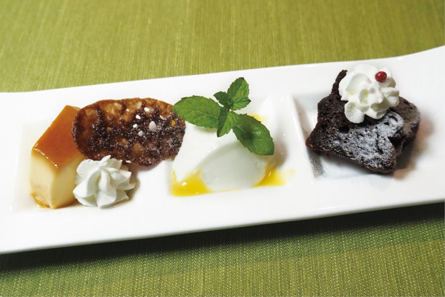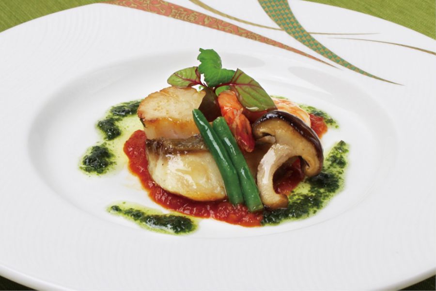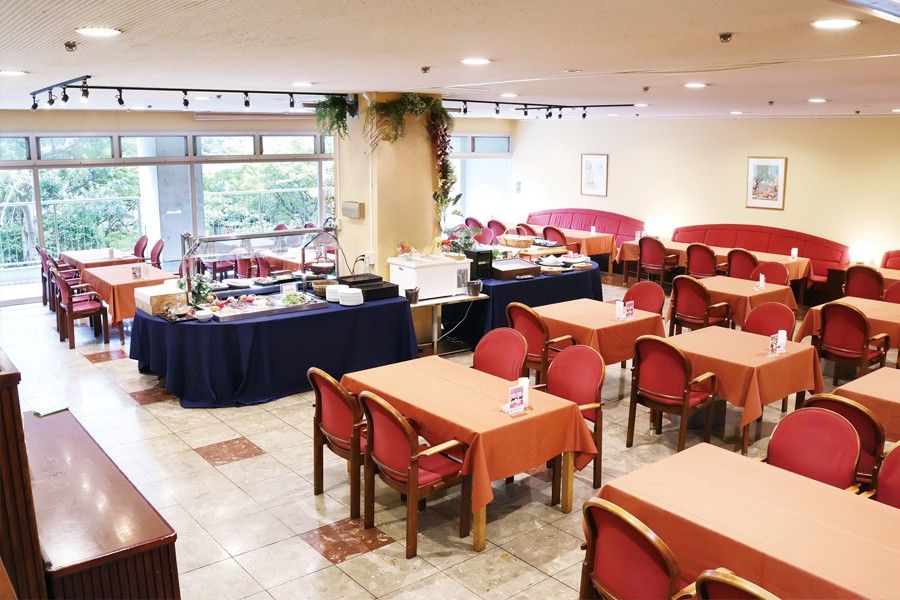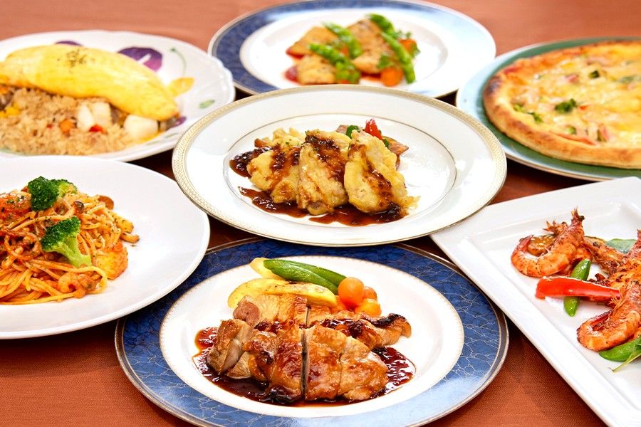 四季折々の食材をいかした豊富なメニューをご用意しております。窓際は壁一面のガラス張りで窓際のテーブル席は四季折々の風景が楽しめます。【昼の部】は好きなメイン料理をお選びいただければサラダ、一品料理、ライス、デザート、コーヒーなどの前菜バイキングが付いてきます。【夜の部】はごちそうオーダーバイキング!2〜3ヶ月毎にメニュー内容を変え、様々な料理が食べられます。お肉やお魚、パスタなどの一品料理からデザートまで全て食べ放題です。お得な飲み放題プランもあります。