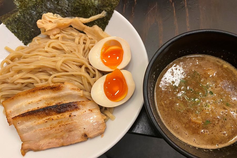 平日12時過ぎに到着、待ち無し。テーブル席はそこそこ空いてました。 1番人気のつけ麺を注文。ほどなく着丼。スープを一口頂く。可もなく不可もなく。 その後麺を一口。なんか他にない麺、気持ち甘みがあるのかな〜平打ちっぽい太麺で食感も良く。スープに漬けると麺の味を損なうことのない味。 よくつけ麺の汁は濃いけどここはそうでないのは麺との取り合わせを考えてのことかな?って感じました。 全体的に美味しかったけど、店員さんが外国人だけで、領収書を券売機から出すのに失敗して店員さんに頼んだけど片言の日本語でどこにあるかわからないの一言で泣き寝入りしました。