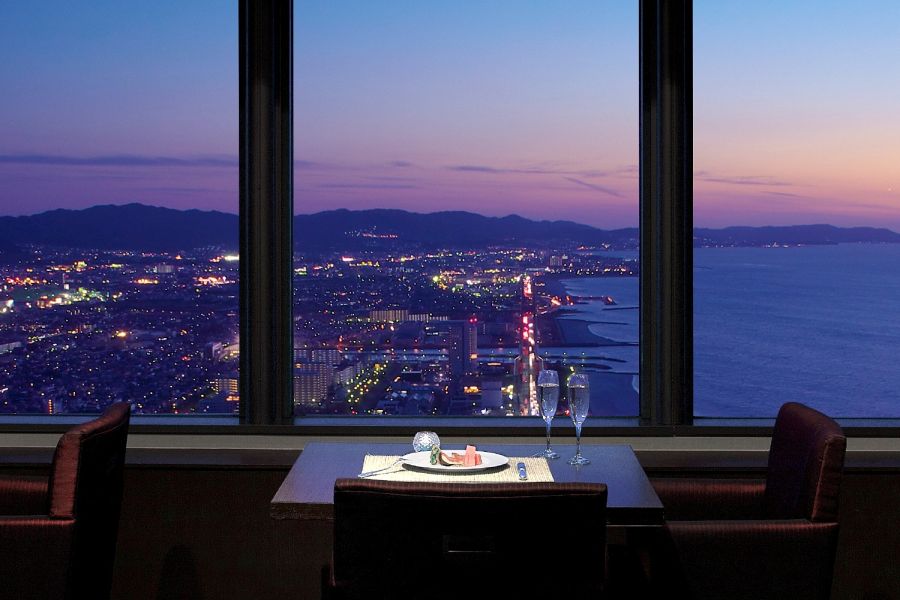 ランチバイキングで3800円は少し高いかな?と思ったが年末年始も休み無しに頑張ったご褒美とやって来ました。土日のみと言う事なので、事前にネット予約して、要望欄に景色のいい席を希望と書いたら、本当に素晴らしい景色の席をキープしてくれてました。 54階からの眺めは絶景で関空や六甲山、明石海峡大橋、淡路島、友ヶ島も良く見えます。 駐車場は地下にあり、支払いの時に券を渡せば無料手続きしてくれます。10:00〜13時まで食べ放題でしたが、私は11時に行きました。10:00に行ってドリンクと果物で1時間会話を楽しんで、11:00から食事するのが賢いかな?12:00〜はコーヒーとケーキでまた1時間と楽しむのも賢いです。ステーキやスモークサーモン、イクラなど高級料理もあるのが嬉しいですが、焼きたてで取り分けてくれるステーキが硬くて噛めない、悪質な肉でしたが、最初だけで後は柔らかくとても美味しいお肉でした。 高級ホテルの従業員だからか、接客はとても素晴らしくて感動しました。支払い前にライン友達になると全員10%ofはとても有難いです。 少し高いですがまた来たいです。 途中で大雪になったり、晴れたり山の天気は変わりやすいのか?支払う時に下を見ると本当に怖い高さです。