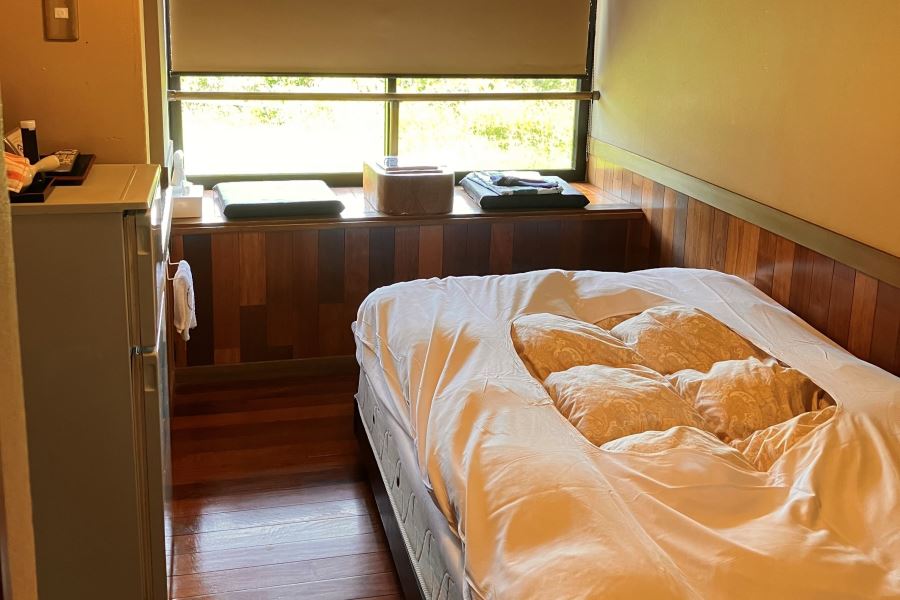 県道の看板横を入ると左手が宿泊の建物になります。ガラガラっと戸をあけるが誰もいないので、右手の奥のお風呂の受付に声をかけます。 宿泊棟は左手奥、一番右の部屋に宿泊!部屋は狭いが二人ならのんびりできます。出窓に座布団があり、ちょこっと座れるのがいい! 湯治の宿のため、バスタオルやアメニティはなく、布団も自分で敷きます。 チェックイン後、家族風呂を予約(無料で何度でも)し、熱湯・ぬる湯・冷泉(ラムネ)に入るが、夕立で露天風呂に入れない!半分でいいのでよしずで屋根をして欲しかったです。 食事はレストラン棟に移動。ちょっと距離と傾斜があります(お風呂も同様)。エノハ料理をはじめどれも美味しかったです。骨せんべいとエノハの唐揚げが続いて出ましたが、感動が薄れるので箸休めを入れて欲しい再考ください。それと箸置きは欲しいです。 連泊してレストランで好きなものを注文するのもいいなと思いました。来月も行きたいです♪