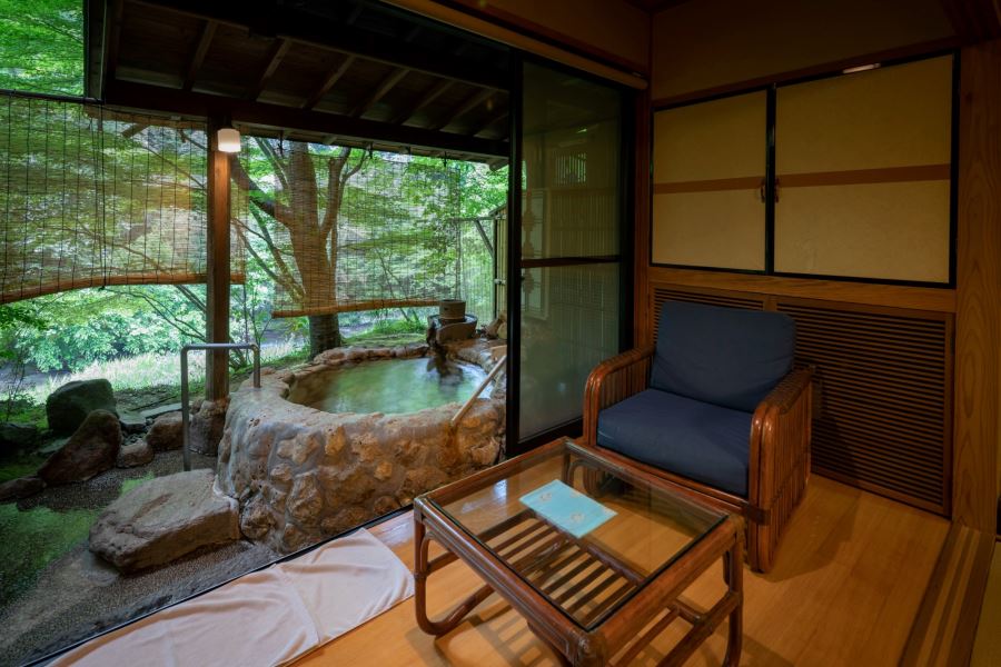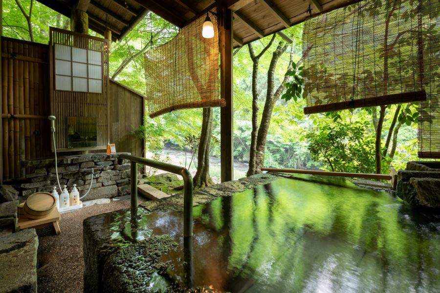 天ケ瀬温泉の中心部から少し離れた静かな土地に佇む「山荘天水」合楽川に面し、桜滝を望む山荘は、広大な敷地の中、緑の木々に優しく抱かれています。喧騒を離れたあなたの別荘として、四季折々の豊かな自然を感じてください。