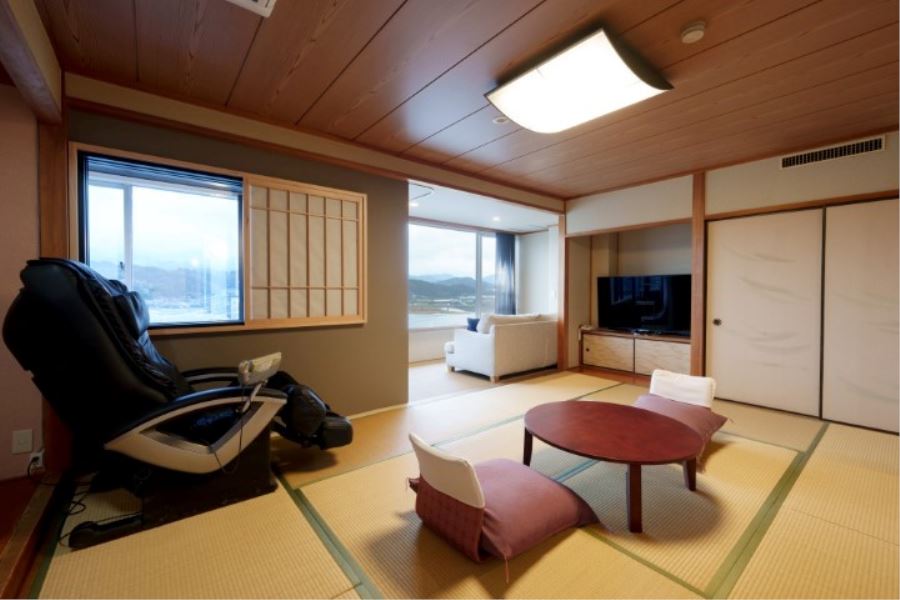 あくまで同じ価格帯のホテルと比べてのレビューですので、少し辛口のレビューになります。 眺望風呂付き和洋室リバービューのお部屋に泊まりました。ロビーは改装されており、とてもきれいで眺望も素晴らしいです。ウェルカムドリンクもあり、心遣いが感じられます。またお部屋からの景色も最高で、お風呂もリフォームされていて掃除も行き届いており、とても綺麗でした。お風呂からも川の景色が望め、気持ちよかったです。高級旅館を目指しているのだろうなという努力は各所に見られ、頑張っておられるように感じました。ロビー横には卓球やゲームで遊べるスペースもあり、小さい子供連れにはとてもありがたかったです。 一方で、従業員の皆さんがまだ少し洗練されていない感じがしました。まず高級ホテルを目指すなら、制服を統一されたほうが良いかと思います。ロビーでのポロシャツの接客はホテルの格を落としてしまいます。また、お部屋も和室とお風呂はきれいでしたがコンセプトが統一されておらず、チグハグな印象を受けました。お風呂はモダン、和室は、まあ和室(モダンなわけではない)、洋室はリフォームはされておらず古さは否めませんでした。実家の洋室みたいな感じです。ご飯を食べるお部屋もモダンな感じにしようとされているんだな、という気概は伝わりましたが、殺風景な感じが隠しきれていませんでした。給仕のスタッフの方々も金髪やピアスなどされており、立ち振舞も居酒屋にいるような錯覚を受けました。また、他のお部屋で宴会をされている方々が大声で騒いでいるのが聞こえてきて会話もままならない時があり、非常に不愉快でした。このようなことは同じ価格帯のホテルでは初めてだったので、かなり面食らいました。 ただ、スタッフの方々自体は親切にしてくださいましたしホテル全体で頑張っておられるように見受けられましたので、今後に期待しています。お世話になりました。