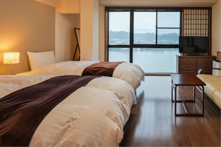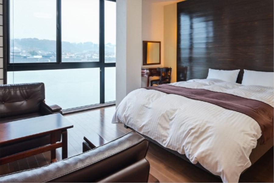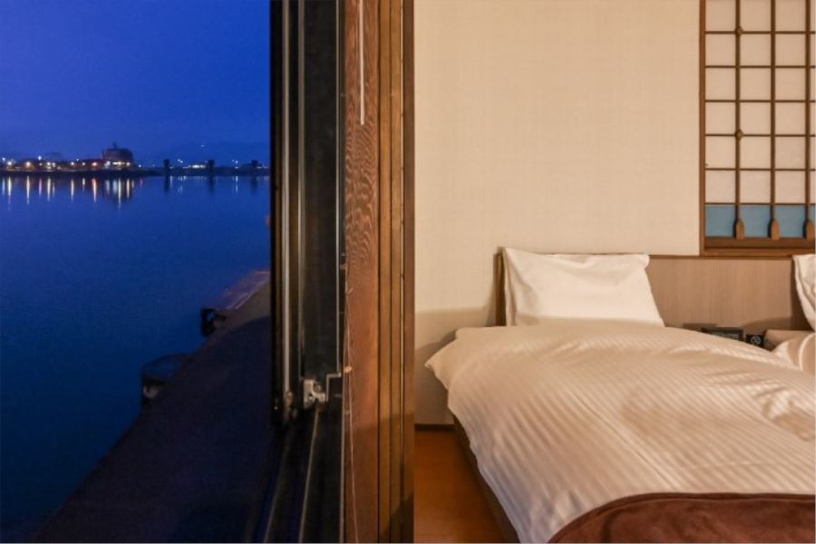 日田の三隈川沿いに並んで建つホテルの一つです。他の大きなホテルと違って客室は4部屋。こじんまりした、食事が中心のホテルです。部屋は改装したばかりでキレイです。三隈川の夕日を楽しみました。部屋にはシャワールームだけですが、二つある貸切風呂に何度でも入れます。やっぱり温泉はいいですね。 駐車場は真向かいの市営駐車場に無料で駐められました。スタッフも感じが良くて、忙しくこまめに働いている姿に好感が持てます。 食事は少し残念でした。洋食のコースだったのですが、厨房が遠いのか全ての料理が冷めていました。メインのステーキも良いお肉なのに残念でした。バイキング形式のレストランとしての営業もされているようで、そちらにはけっこう料理が出ていて、飲み放題をつけてもお得な料金設定でにぎわっていました。そちらの料理が優先されていたのかもしれません。事前にビュッフェへの変更や、屋形船への変更の打診があったので、ホテルとしてはそちらがオススメなのでしょうね。朝食も物足りない感じでした。 部屋やお風呂は気に入ったので、次回は夕食のプランをよく考えて利用したいと思います。