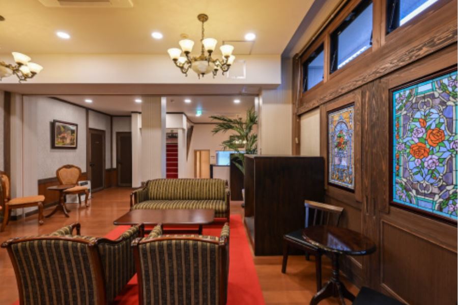 こじんまりしたホテルです。 接客は良いです。 部屋も広く温泉が貸切風呂なので良いです。階段が多く足の悪い人は不向きですね。朝食だけしか食べて無いですが洋食です。味は良かったですよ。 館内には大スピーカーからBGMが流れています。結婚式も出来るようです。
