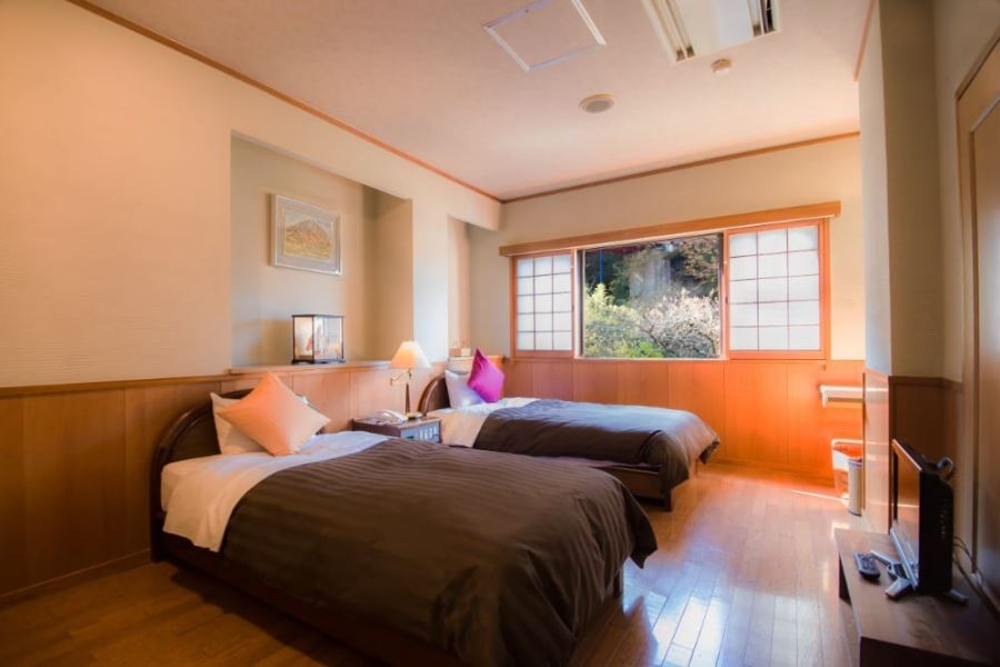 R210ではなく旧道沿いにあります。R210の桜竹小学校入り口交差点を川方向に曲がり、急坂を下った所にありますが、国道に看板はありません。お地蔵さんの看板作ったらいかがですかね! 足が悪いので部屋の配慮の電話連絡したら、そんな対応ははできませんとの対応。 また台風が来てるので、ネットを見ると翌日部屋が空いているから変更できないかと聞くと自分でするようにと言われるのでキャンセル料はどうなるかと聞くと必要ないとの回答。でもキャンセル料請求のメールが来たからまた連絡すると、明日9時以降にまた電話してこいとの事!!それはあなたが引き継ぎしたらいいだけではないのかなと思います。 駐車場からホテルまで坂道・階段があります。 ホテルに到着すると3組程受付待ち。一人のおじさんはうつむいて自分のことで精一杯。一人のおじさんは待ってる人がいるのに事務所に入り、稼働してるのはもう一人のおじさんだけ! フロントのおじさんの声を聞いて訳のわからない電話対応をされたおじさん達だ!昼間に電話したらいいのかと思ってたが、そーではない事確定。帰りたくなった。 部屋は電車がすぐ前を通り、音が気になるが観光列車も通り楽しい。モーター音と廊下・上の階の音が気になり、カビ臭いのも気になります。 温泉は大分特有の単純塩化物硫黄泉だがヌルヌルとしていないし、部屋から坂道があります。 晩ごはんは、アメゴや肉を自分で焼いたりして美味しく楽しかった!地酒の飲み比べも辛口のお酒で美味しかったが、仲居さんに連絡するにはフロントに電話しないといけないのが面倒だでした。 お客に対する配慮の少ないホテルです。いいなと思ったのはシャンプーのお地蔵様のイラストくらい。フロントのおじさん達のネット対応知識と接客の改善が急務ですね。