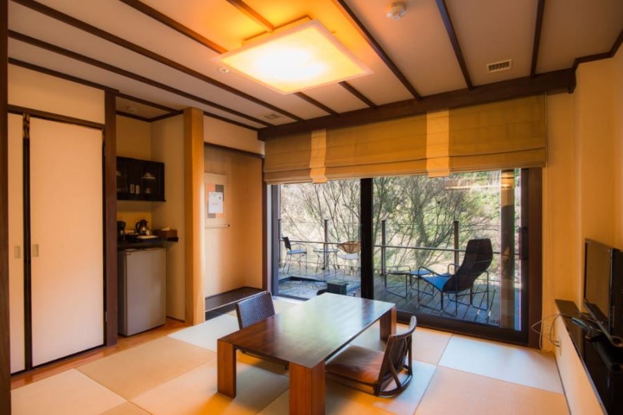 初めて利用させてもらいました。落ち着いた場所にありゆっくりすることができました。客室からはJRの線路が見え、ゆふいんの森号をみることができました。料理も品数があり、満足したのですが…全体を見て指示を出すようなスタッフの方がいないので、数回こちらからスタッフの方を呼びに行く場面がありました。お風呂も楽しめました、階段を降りて行く露天風呂も楽しめました。森のなかのお風呂で落ち着きます。 お願いですが、脱衣所に給水する水や自販機がないので喉が渇き困ったことと、扇風機があると助かります。また伺いたいと思います。