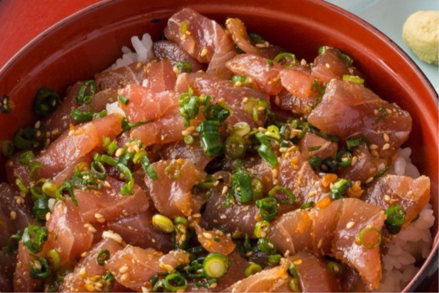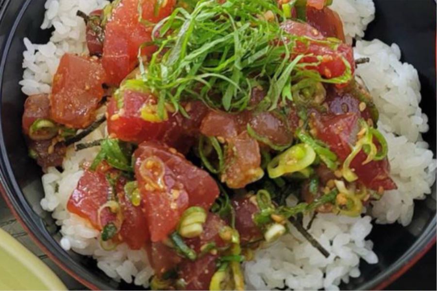 大分県の津久見市にあります、マグロステーキとひゅうが丼が名物のお店「浜茶屋」。新鮮な海鮮をお客様へご提供しております。ひゅうが丼とは特性のごまダレで味付けをしたマグロをどんぶりにしています。マグロのとろけるような触感と少し甘めの味がとてもよく合います。最後はお出汁をかけて完食間違いなしです。