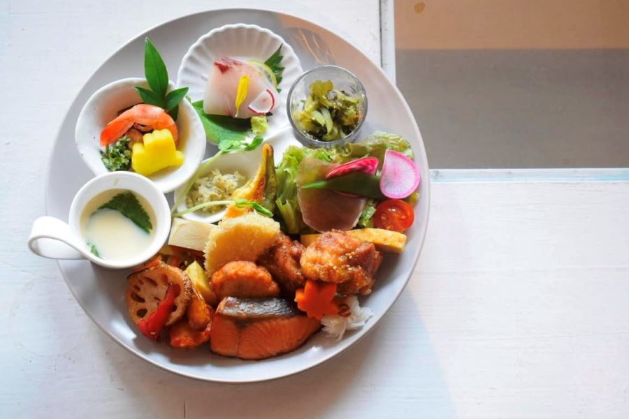 倉庫の跡地の広い空間でゆっくり食事ができるスペースです。20食限定のランチは運が良くないと当日行っても無理と思います。ランチは20食だけでそれ以外はメニューがありませんので予約必須と思います。ワンプレートに玄米ごはんと納豆の味噌汁付きで1500円でした。プラスでドリンク200円デザートも別にありました。11時半にオープンでほぼお客様が一緒に入りますのでランチが出てくるのは20から30分かかりました。