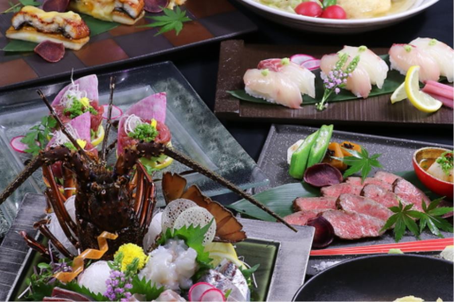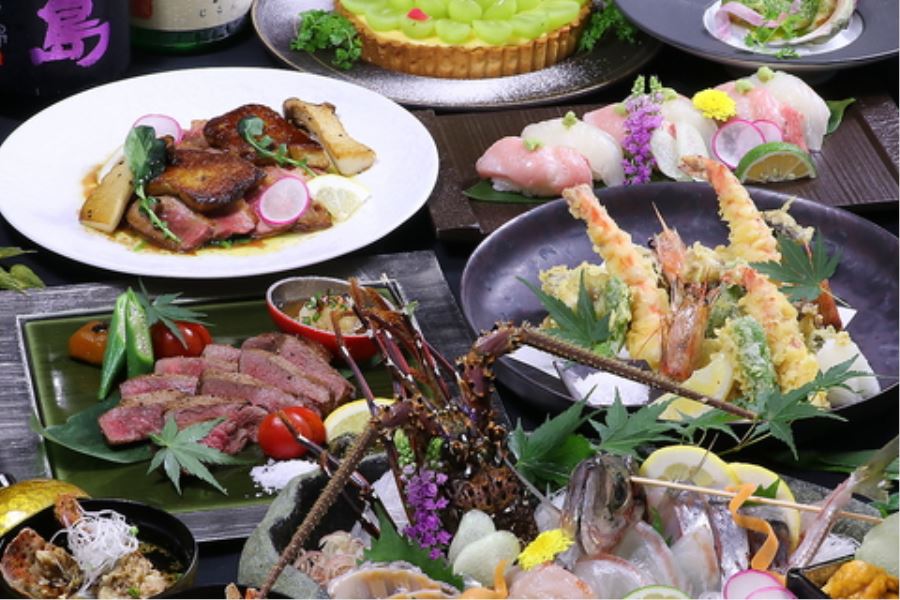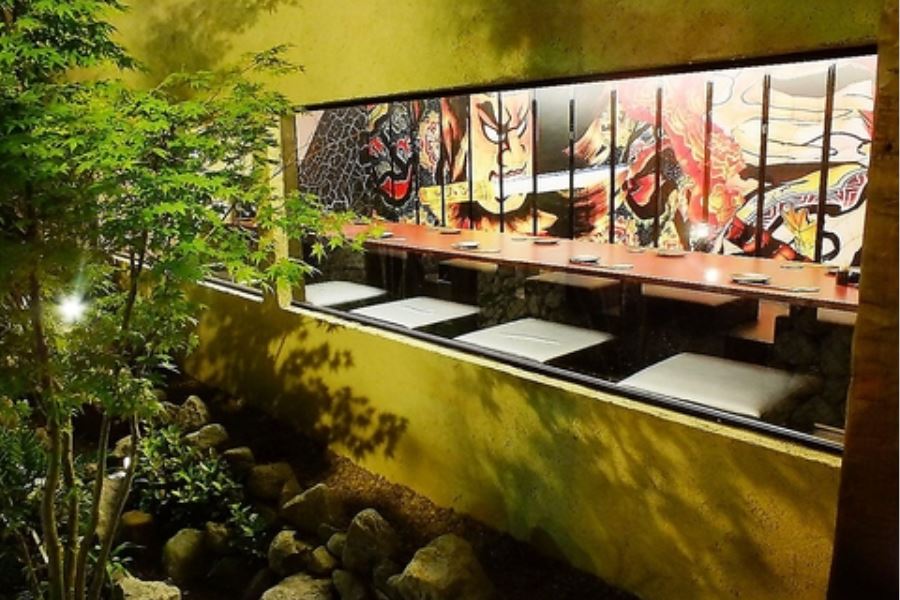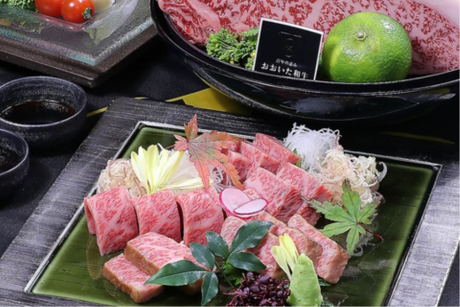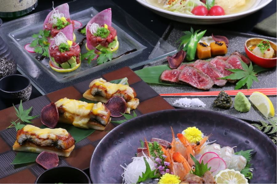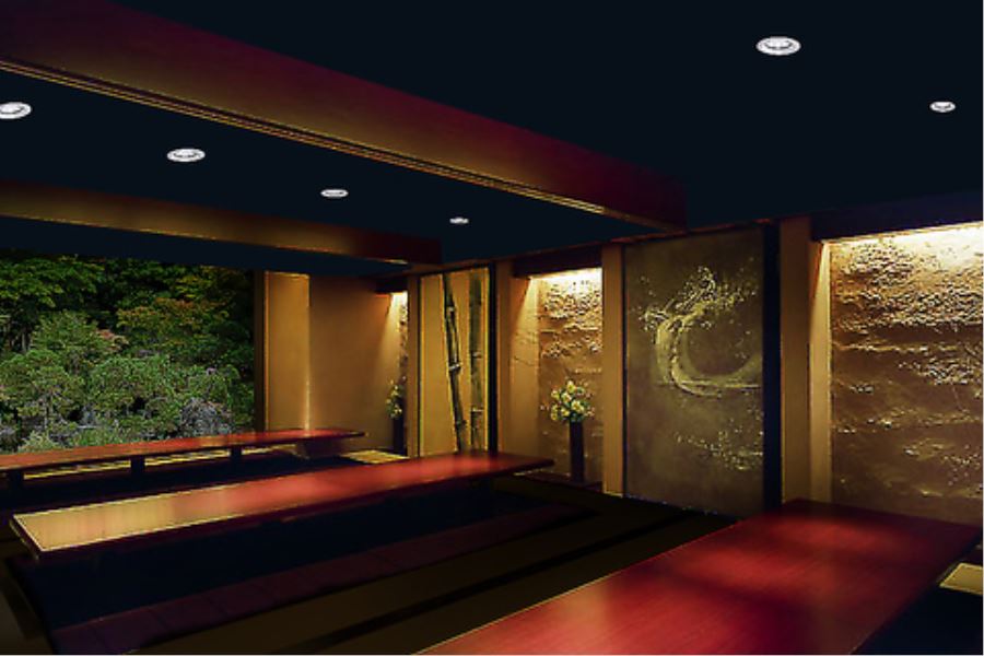 豊後水道佐賀関の関あじ関さば・臼杵とらふぐ・中津はもをはじめ、最高の海の幸。国産黒毛和牛の中でも高価である非常に強い旨味をもつ百年の恵みおおいた和牛をはじめ、最高の山の幸。厳選した旬の素材を追及し提供させていただいております。夏季限定で【ハモ料理】冬季限定では【とらふぐ】など季節に合わせた料理も堪能でき、大分の郷土料理や全国各地の限定日本酒もご用意。水の流れる庭園を望む御座敷宴会場は掘りごたつ式の完全個室。10名様前後から最大60名様まで、各人数に合わせた御利用が可能です。