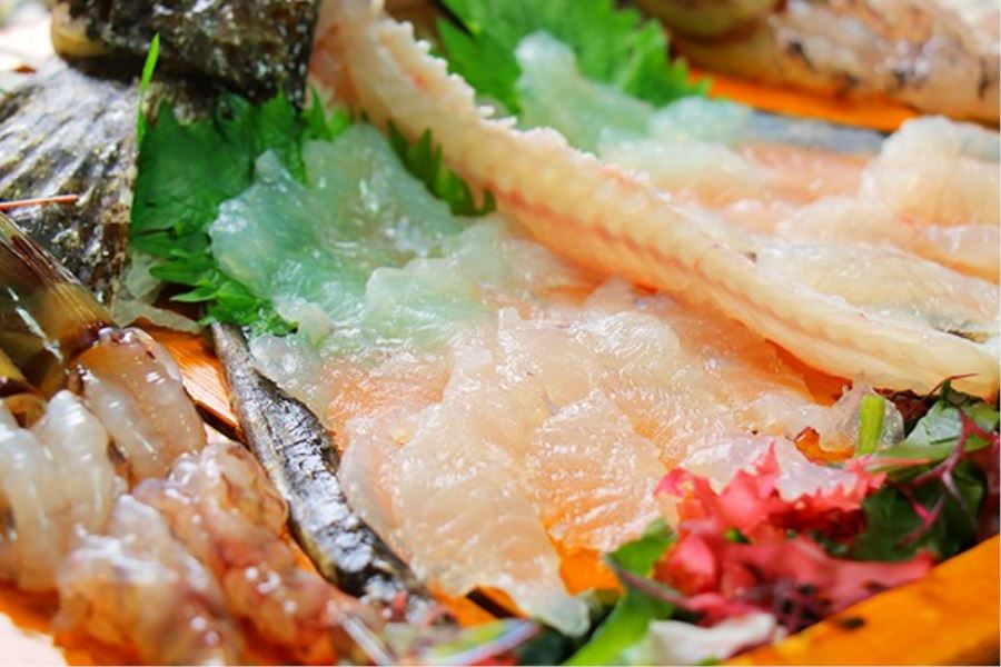建物は歴史を感じさせる程、古くて趣を感じる位だが、料理は新鮮な海の幸が満載で、正直一回の食事では食べきれない程のボリュームがある。 特にオコゼのお刺身は、コリコリとした歯応えと噛み締める程に感じる旨味が強くて絶品だった。