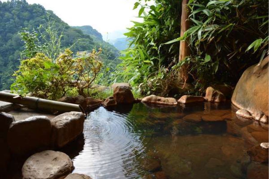 春は新緑、夏は残暑、秋は紅葉と季節ごとに多くのお客様にお越しいただいております。渓谷の中に佇む露天風呂付の離れでは、周りを気にせず、ゆっくりと過ごしていただけます。お食事処にも個室をご準備して、心ゆくまで料理を味わっていただきます。夕食は特別料理・九酔渓コースをお楽しみください。2名様から友達同士、ご家族連れまで幅広くお泊りいただけます。