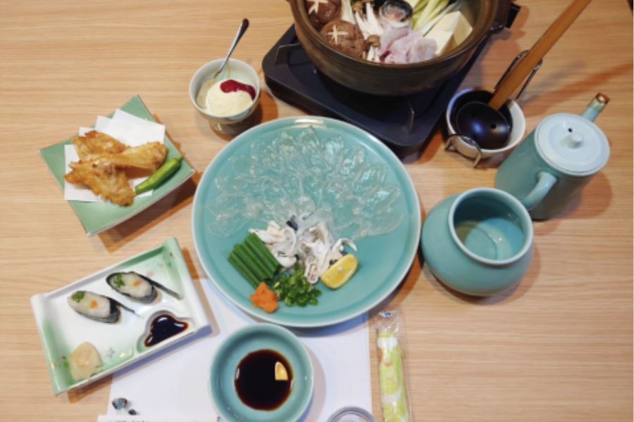 「臼杵ふぐ」は生きた状態でお客様に提供するため、厚めに切を入れております。そのため、なめらかで舌ざわりのど越しが良いです。当店はリーズナブルで価格帯で提供しております。また、ふぐのから揚げが大人気です。