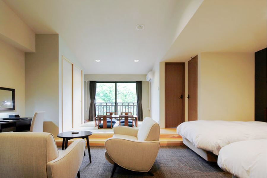 くじゅう連山の入り口にある、最高のロケーション!!阿蘇くじゅう国立公園内の大自然の中に佇む、おしゃれな外観。男女別の大浴場は天然温泉かけ流しです。くじゅう連山登山や、くじゅう観光へのアクセス抜群♪♪タデ原湿原、登山口、長者原ビジターセンターまで徒歩1分です。
