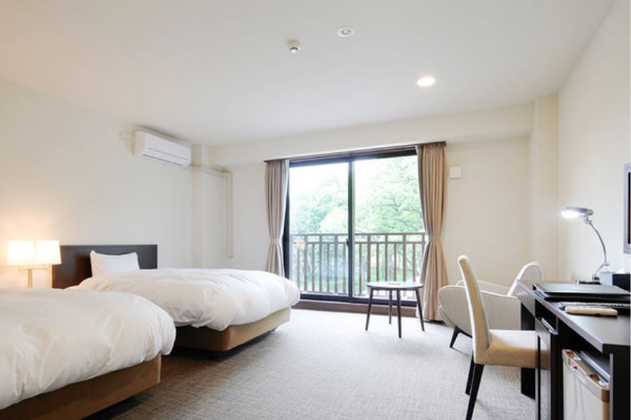 8/10(日)に家族4人で1泊させて頂きます。ホテルに到着するまで分からなかったが駐車場、ホテル玄関脇にありました。HPに記載がなかったので不安でした。お部屋は和洋室の4.5和室+ツインのお部屋です。内風呂、トイレ、ソファーなど設備は新しく、お部屋の広さも十分広く快適ですが、テレビサイズが小さくベットや和室からは遠くて見ることができません。冷蔵庫にはミネラルウォーターサーバーが2本準備されていました(4人宿泊なんですけど)。その他にケトル、ドライヤー、空気清浄機、Wi-Fiも揃っています。ただしクシ、ヘアーブラシはないので持参して下さい。 大浴場は洗い場が4区画、湯船は室内と露天の2つあり、温泉は琥珀色でトロっとしてます。