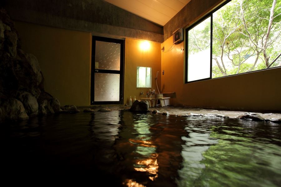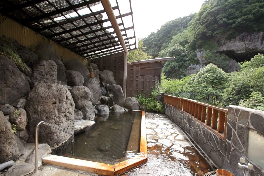 清流玖珠川を望む渓谷に佇む一軒宿。露天風呂から眺める景色は、四季折々の自然が織り成す見事な渓谷美と平家の落人伝説の残る河岸の洞穴に奉られた羅漢仏拝む事ができる。温泉は、ほのかに硫黄の香りのする柔らかい肌触りの単純泉で、旅館の直下から約50度の温泉が空気に触れる事無く、湯船に提供している。正に酸化していない美肌に効果的なフレッシュな温泉です。