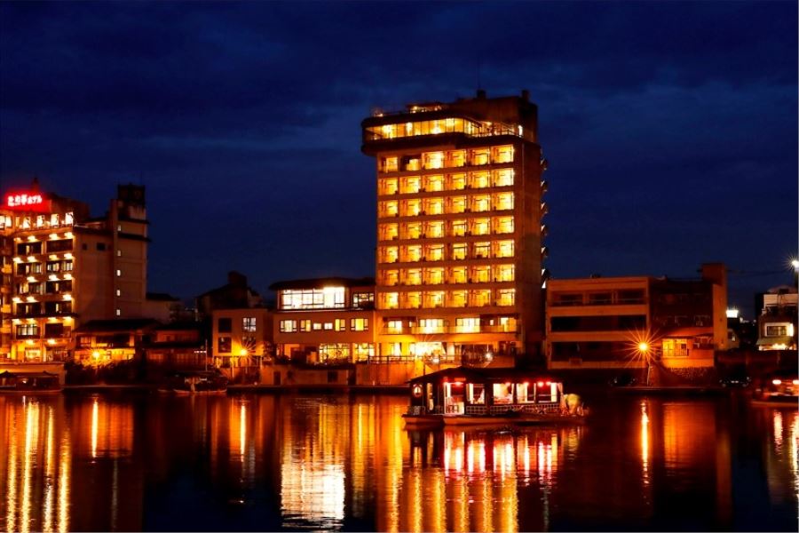 大分県 日田市 日田温泉にあります。 客室からの眺めが良く、生まれて初めて「鵜飼」を見ました。当然、夜景も最高です! 料理も良く、日田は鰻が名産なのですね。独特の調理方法だと思いましたが、たいへん美味しかったです。 担当で付いてくれた女性スタッフの人は 好感が持てました。外国の方のようで(今は もういないかも知れませんが) 若いから慣れていないとは思いますが、一生懸命さ•誠実さが伝わってきて、応援したくなりました。この女性スタッフ(仲居さんと言っていいのかな?) に⭐5つです。