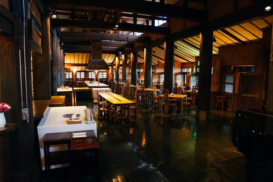 広い店内は換気が充分にされており、コロナ対策も万全です。 スタッフもとても丁寧な対応でした。 女性の方が笑顔が素敵でした。 和牛ステーキのランチコースは食べごたえがあり、美味しく頂きました。 ローストしたジャガイモが、とっても美味で驚きました。近隣のお野菜を使用しているそうです。 ノンアルコールのシャンパンもどきも頼んで雰囲気を盛り上げました。 食後はお風呂も利用できます!! 敷地が国定公園内なので、大自然に囲まれて景色も空気も美味しく、季節の植物も楽しめます。 ゆったりのんびり過ごせますよ。