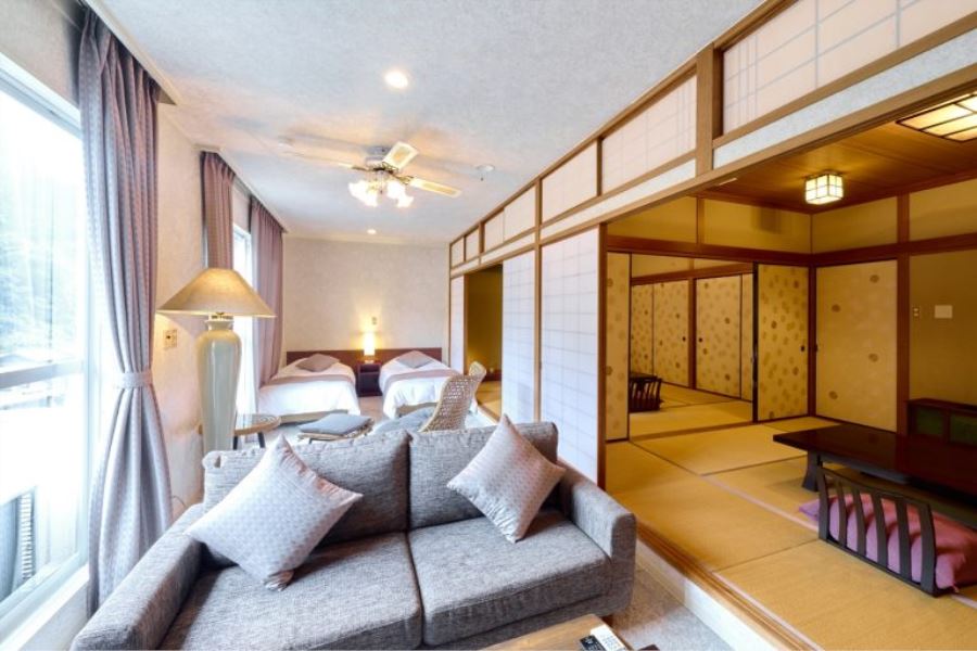 当館のお湯は、美肌効果が特徴です。ほのかな硫黄の香りを感じながら、ゆったりとお湯に身を任せてください。ゆっくりと流れる時間とともに、深い癒しを味わっていただけます。お風呂とお食事をお楽しみいただいた後は、お部屋で満ち足りた時間を満喫してください。当館のお部屋はすべてリバービューです。川を眺めながら、その日の旅の余韻に浸っていただければ幸いです。